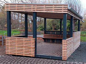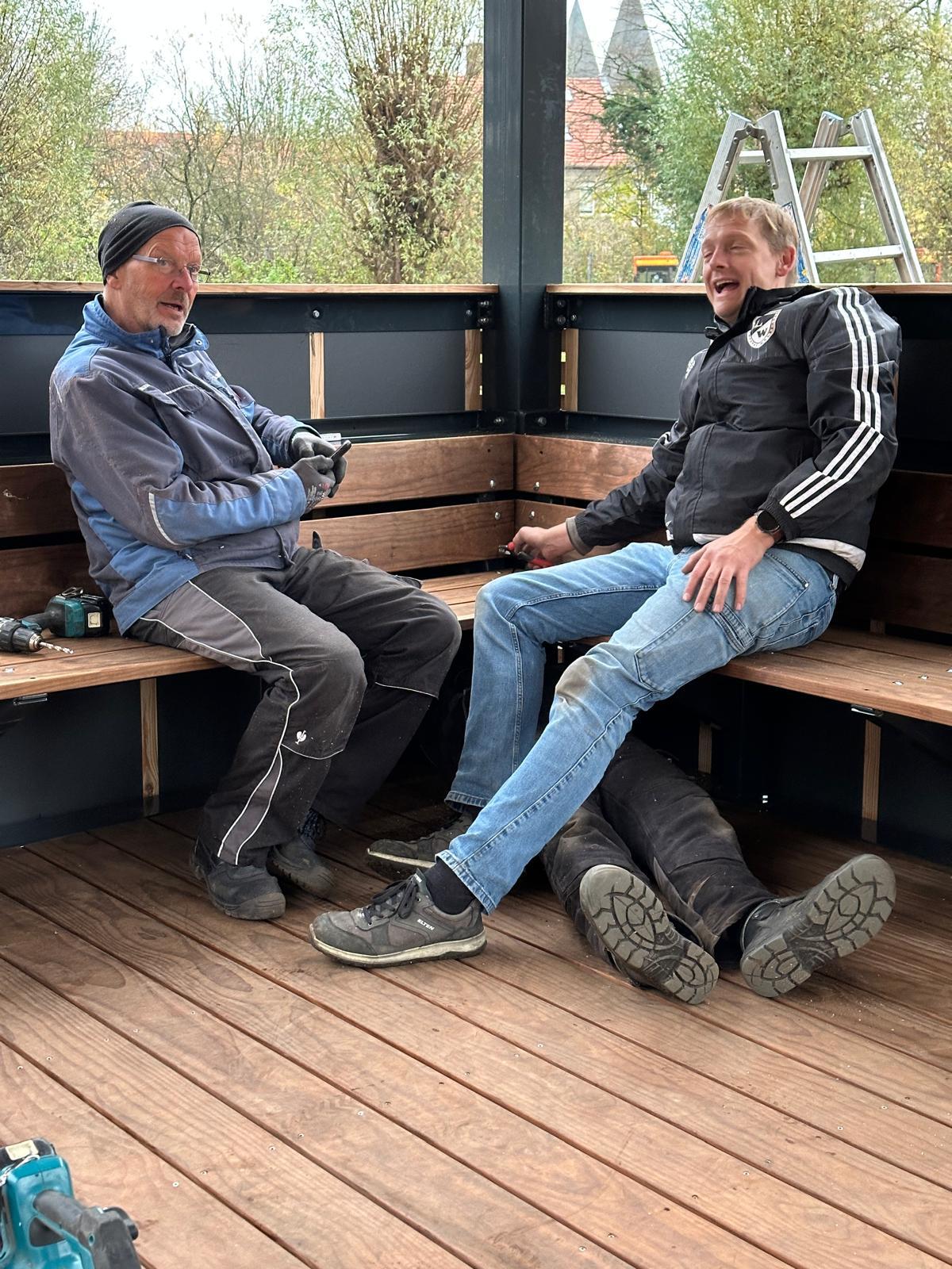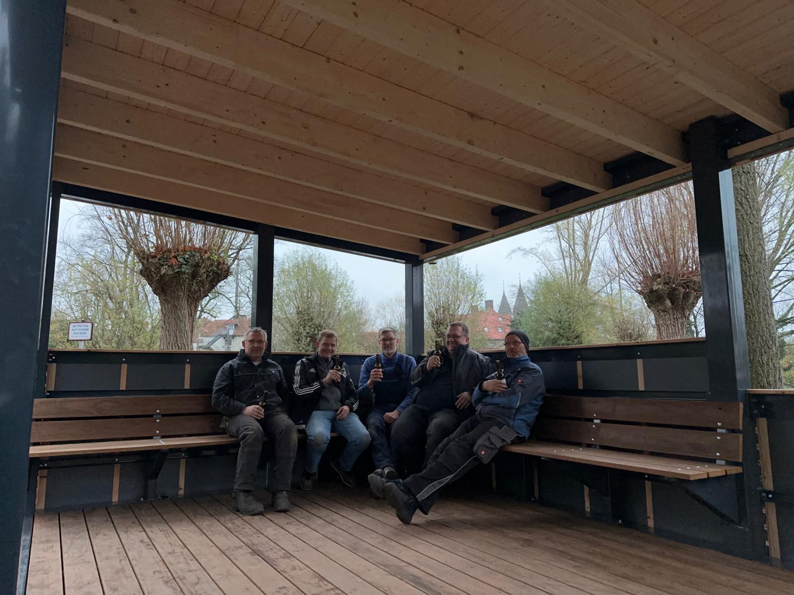 Für Radfahrer, Spaziergänger und alle anderen, die sich zwischendurch ein wenig ausruhen möchten oder Schutz vor Regen und Schnee suchen, gibt es jetzt an der Vechte neben Boule-Platz und Vechteplattform einen Unterstand mit Sitzbänken. Initiiert wurde das Projekt vom Dorfteam Langenhorst, und realisiert wurde es mittels Fördergeldern vom LEADER-Projekt des Landes NRW. Federführend für Umsetzung und Bau waren Ansgar Kremer und Markus Volkery, aber diverse weitere fleißige Helfer waren ebenfalls beteiligt. Diesen allen sei für ihr Engagement und das tolle Ergebnis herzlich gedankt!